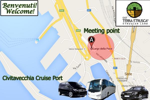 L’incontro è previsto la mattina al Terminal dei Croceristi “Largo della Pace”. La partenza da Civitavecchia è stabilita alle ore 9:15/9:30 in minibus Gran Turismo.